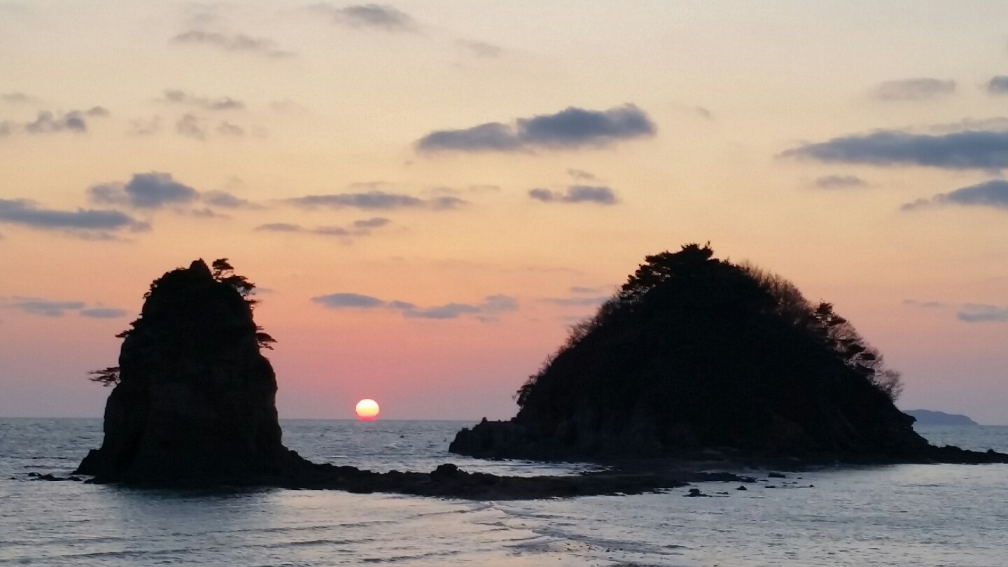 세 개의 튀어나온 삼봉괴암과 해당화가 유명하고,